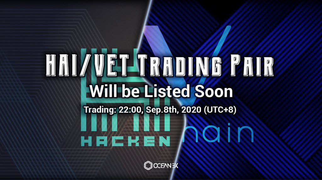 📢#OceanEx is going to open $HAI/$VET trading pair at 22:00, Sep 8th, 2020 (UTC+8).