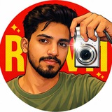 Background: bold pop-art style background with halftone dot texture. High-contrast solid color (yellow or red). Large bold uppercase text RAVI placed behind the subject’s head, partially visible, fully in the background layer, never overlapping or covering the face. Add minimal graphic accents if needed, subtle and balanced.