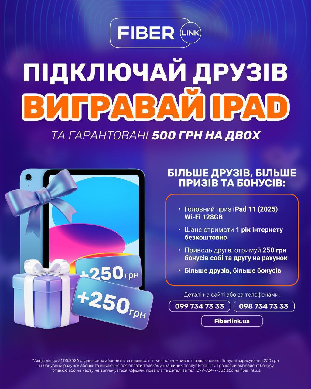 Деталі у нас на сайті https://fiberlink.ua/pages/pidklyucai-druziv-vigravai-ipad-ta-garantovani-500-grn-na-dvox