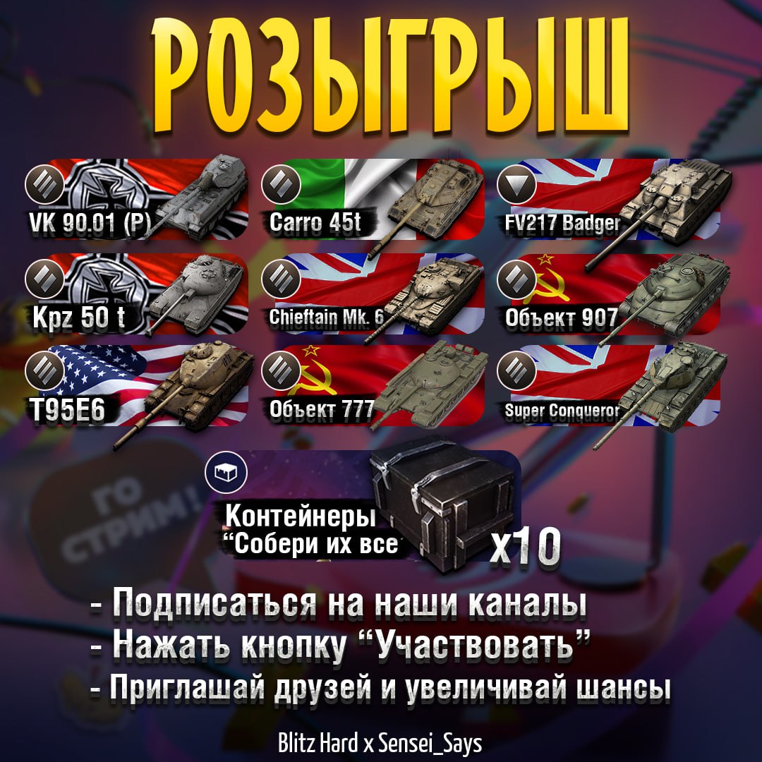 ⚡️Масштабный розыгрыш танков 10 уровня и контейнеров "Собери их все"