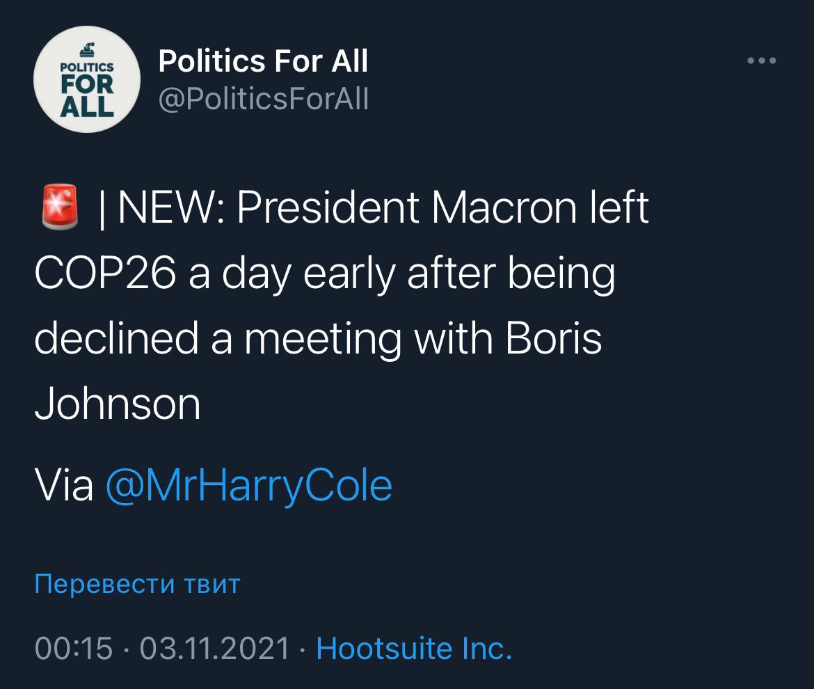 Борис не схотів проводити зустріч з Макроном, а Маню роздратований покинув саміт в Глазго.