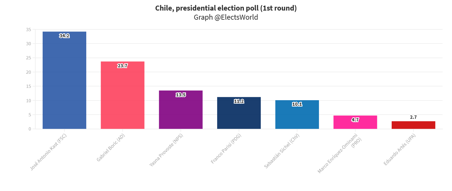 Лідирує в опитуваннях Хосе Антоніо Каст, який балотується від консервативного Християнського соціального фронту. Каст прихильник Піночета, християнин, соціальний консерватор та економічно правий.