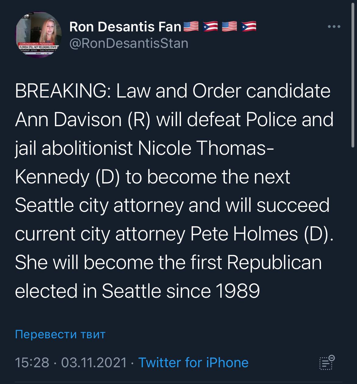 В Сіетлі мега-сенсація. Республіканка Ен Девісон виграла вибори на посаду прокурора міста.