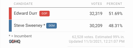 Найбільш вагомий демократ штату, голова сенату штату Стів Суіні (головував в сенаті 12 років!) програє вибори республіканцю Еду Дурру.