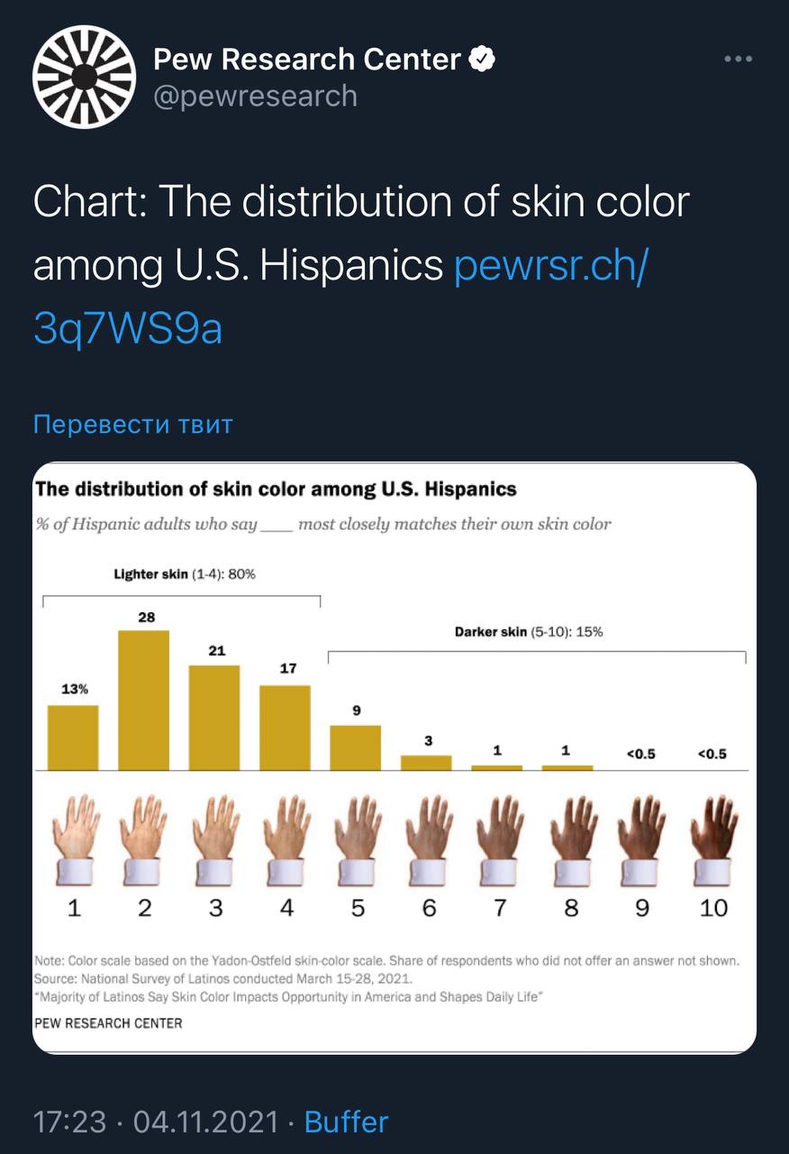 На фоні масового відходу латино від Демпартії, Pew Research Center вирішив класифікувати латино за світлістю шкіри.