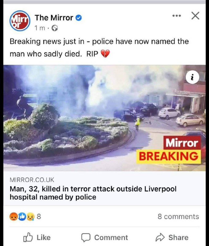 Але у лівих видань свої херої. Лівацьке видання Daily Mirror написало сумний пост про загиблого терориста і каже йому «покоїтися з миром».