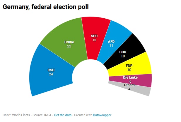 Вся річ в тому, що ХДС проштовхнула посіпаку Меркель Арміна Лашета в кандидати в канцлери, при тому, що він вкрай не популярний в Німеччині і набагато менш популярний за лідера ХСС Зьодера. Так лише 19% хотіли б бачити Лашета канцлером. В той же час Зьодера воліли б бачити канцлером 40% населення (23% хотіли б бачити лідера Зелених Аналену Бербок та 16% - лідера СДПН Олафа Шольца).