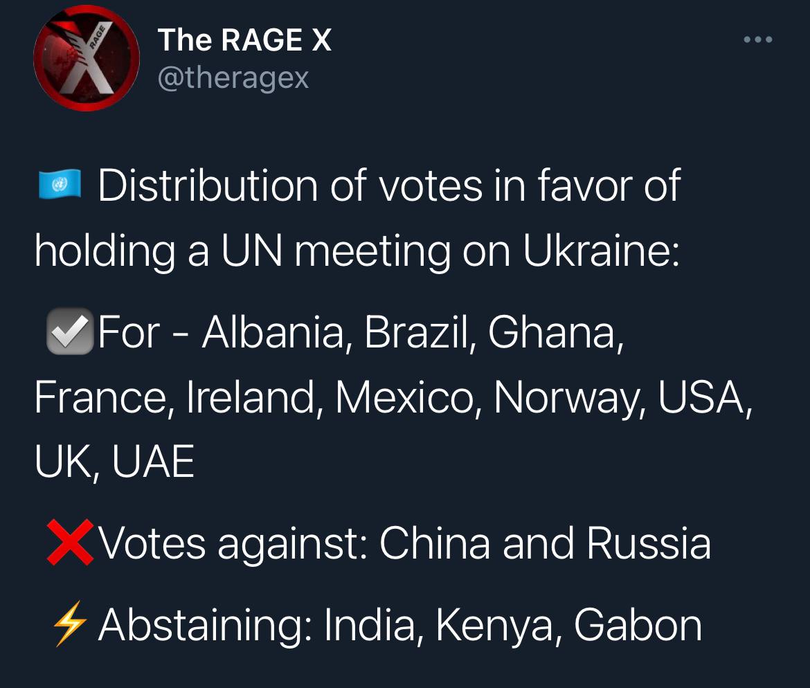 Цікаво було подивитись як проголосує ОАЕ в питанні включення питання ескалації з боку РФ в обговорення Радбезу ООН на фоні рухів зі зближення обох.