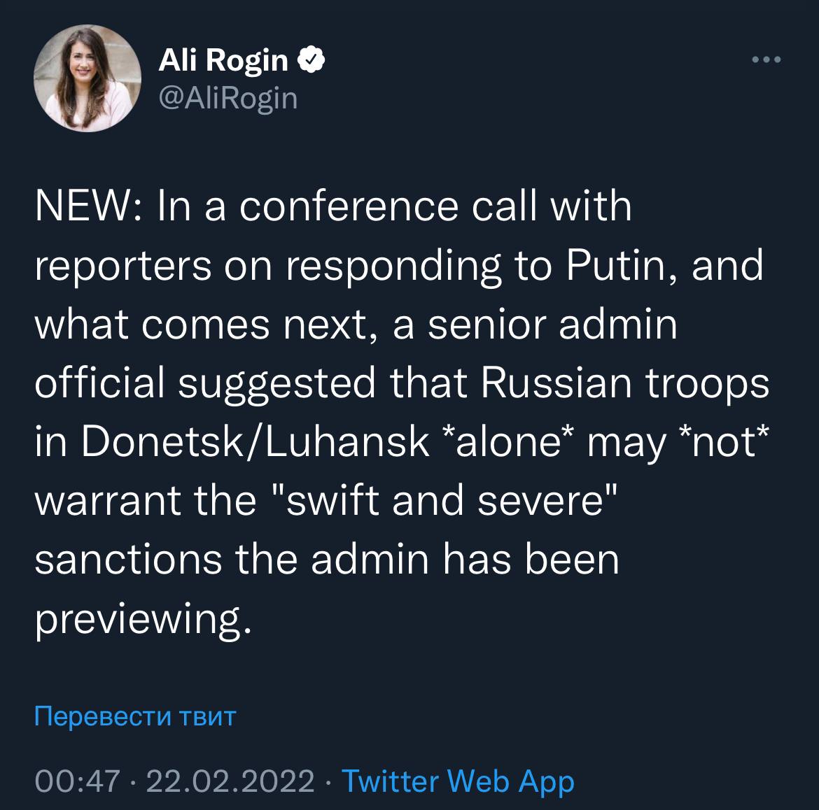 Just do it! Досить розглядати і тягати кота за яйця. Вже добу як ми знаємо, що Путін визнає Л/ДНР. Вже мав бути напрацьований пакет рішень, які ми маємо зараз імплементувати.