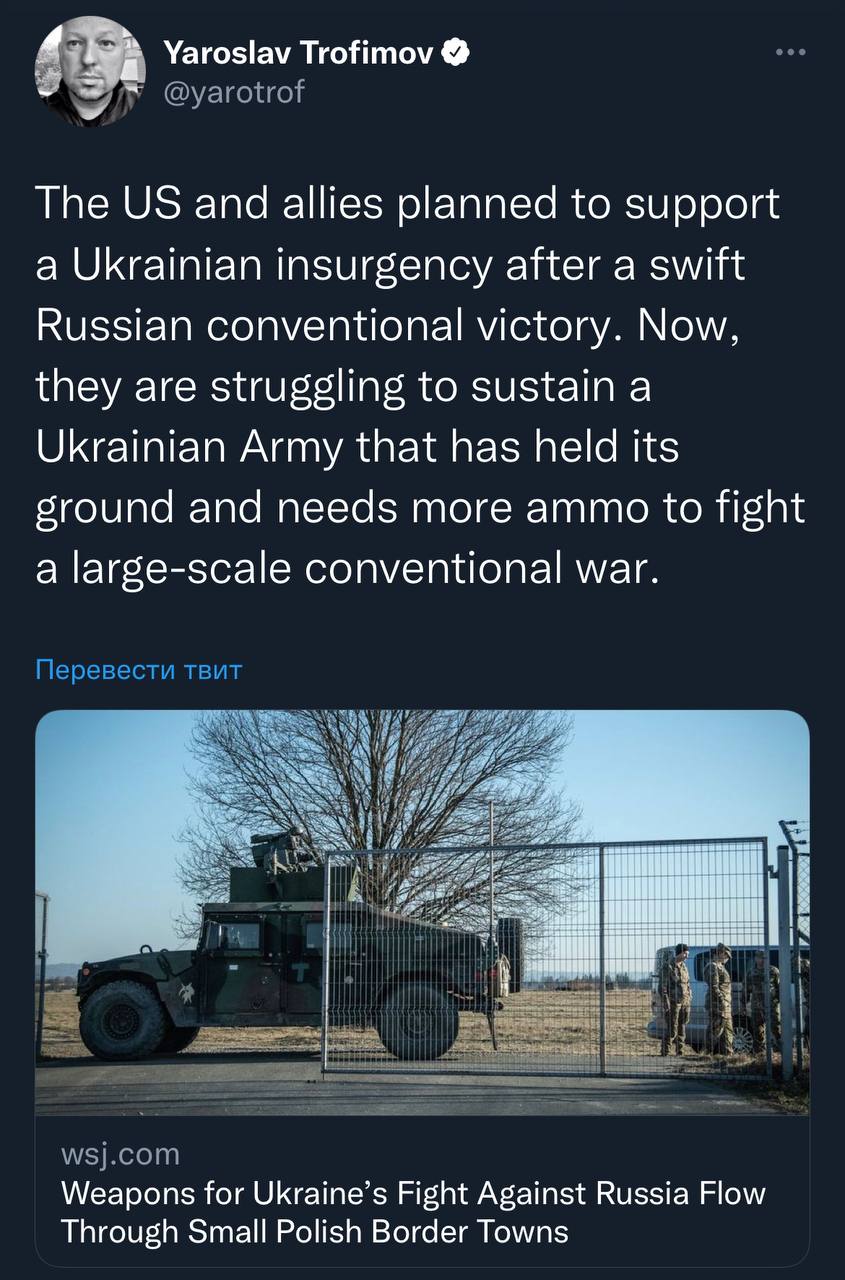 США готувались до того, що Росія захопить Україну і почнеться партизанська війна. Вони готувались підтримувати партизан (фактично Афганістан 2.0), тому зараз підтримка армії України та конвенційної війни така проблематична - вони не думали, що ЗСУ будуть чинити спротив.
