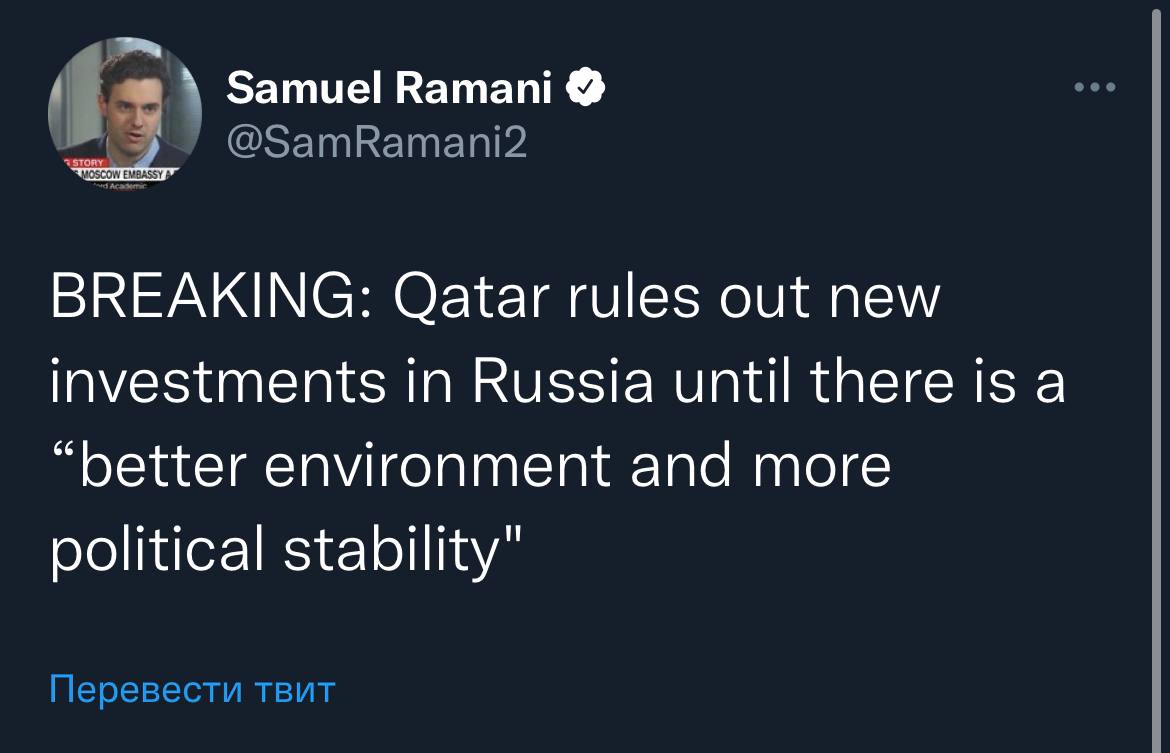 Катар призупиняє інвестиції в Росію до «стабілізації політичної ситуації»