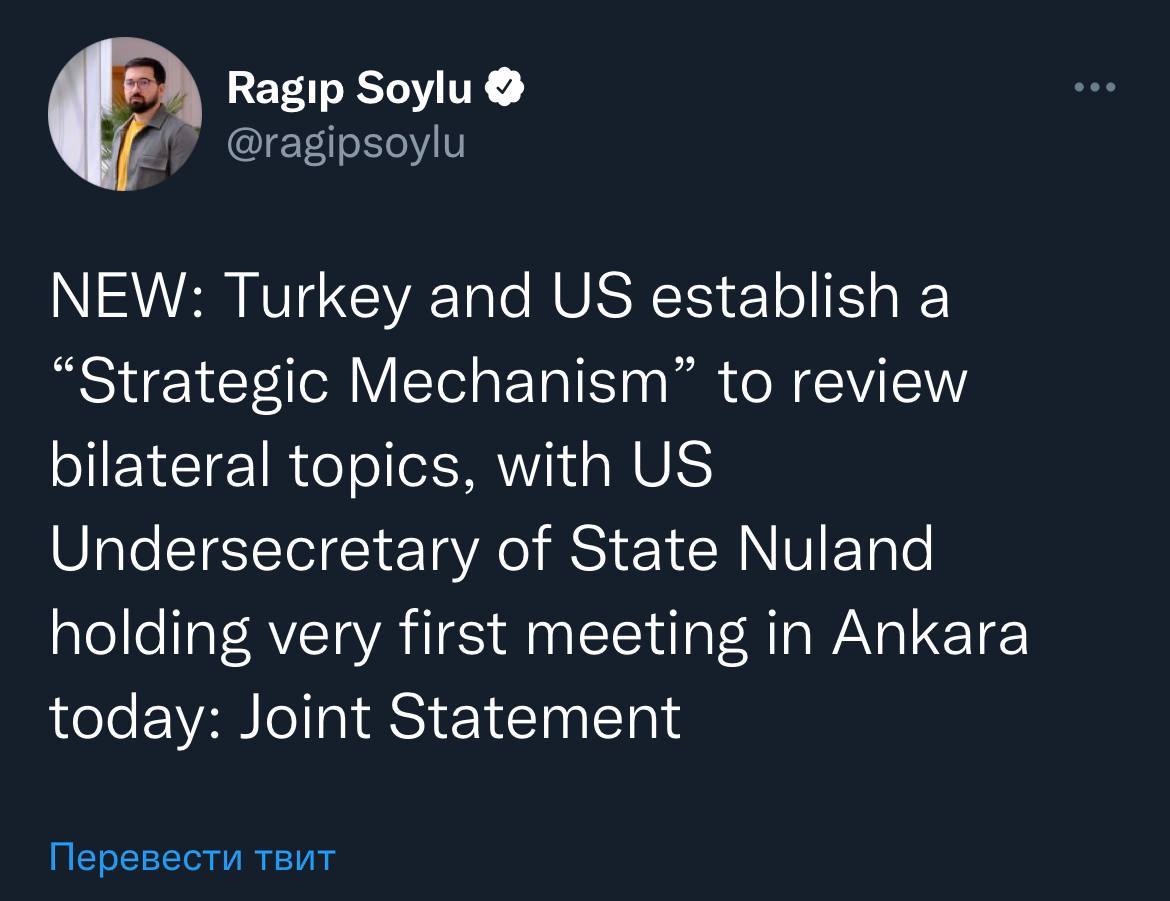 В терміновому порядку США нормалізує відносини з Туреччиною. Туди відправили Нуланд і домовились про «створення стратегічного механізму» для перегляду ключових тем.
