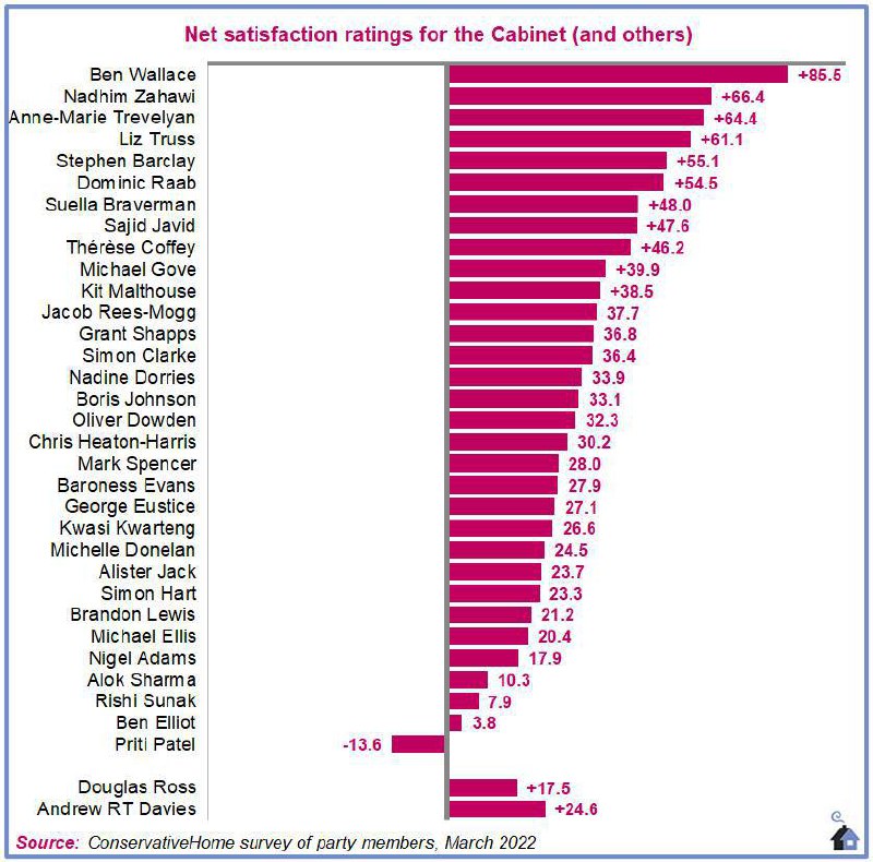 Рейтинг популярності членів кабінету міністрів Великобританії серед члені Консервативної партії.