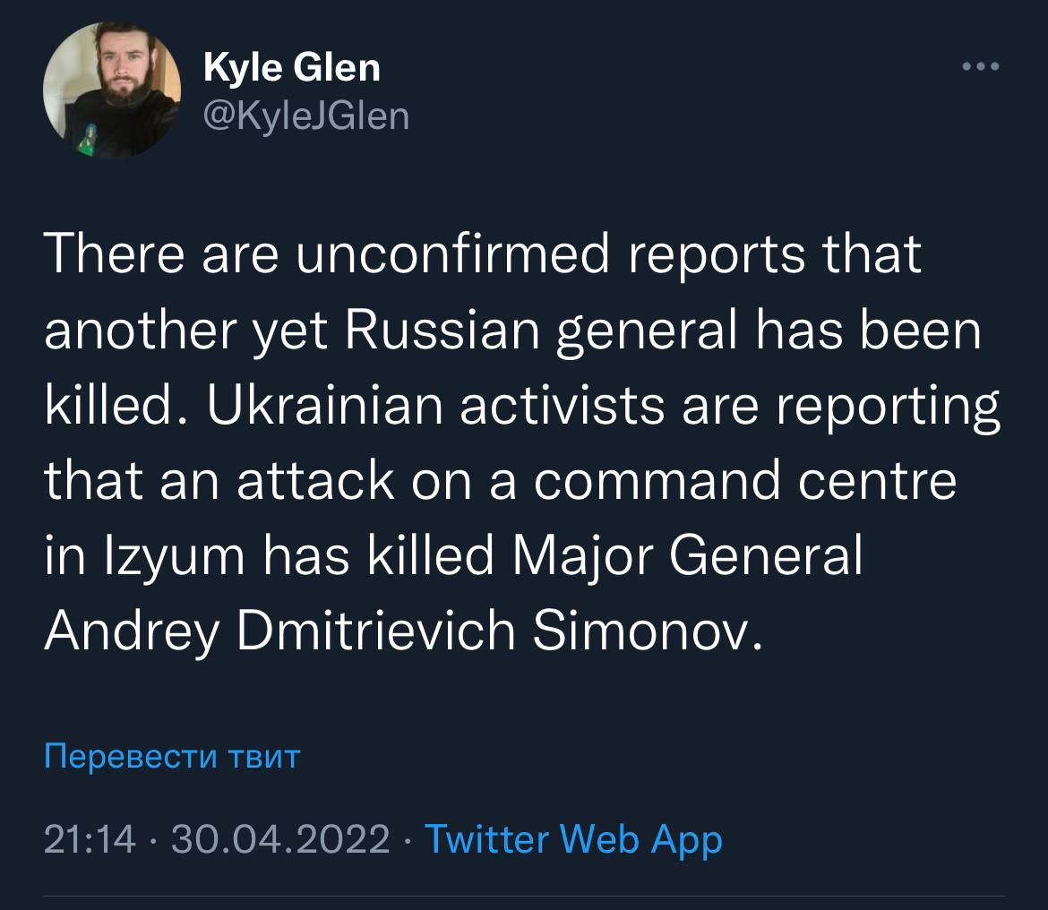 Є інфа, що в Ізюмі мінуснули чергового руснявого генерала - Андрія Сімонова