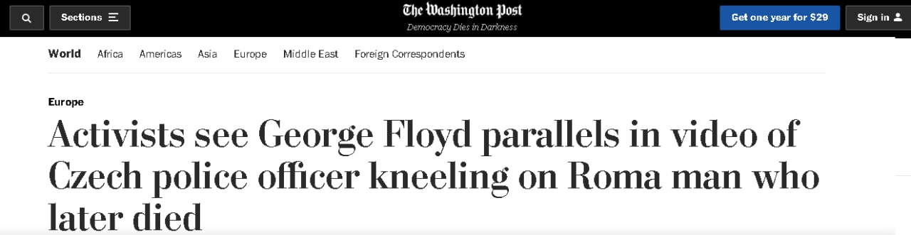 Європейська прогресивна спільнота так чекала "свого Джорджа Флойда" і ось при затриманні помер якийсь наркоман в Чехії. Ще й циган - тобто "майноріті". Ось воно!
