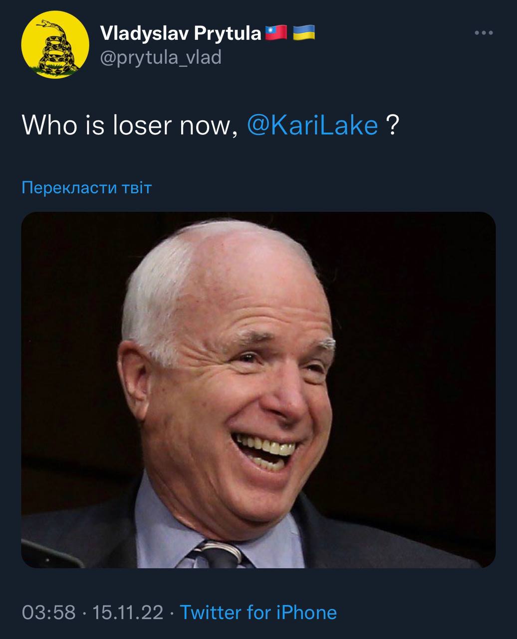 Адам Лаксолт визнав поразку, що доводить мою характеристику, що він не повний фрік, хоча робив помилки у 2020 і намагався стрибати проти Україні в трампістському угарі.