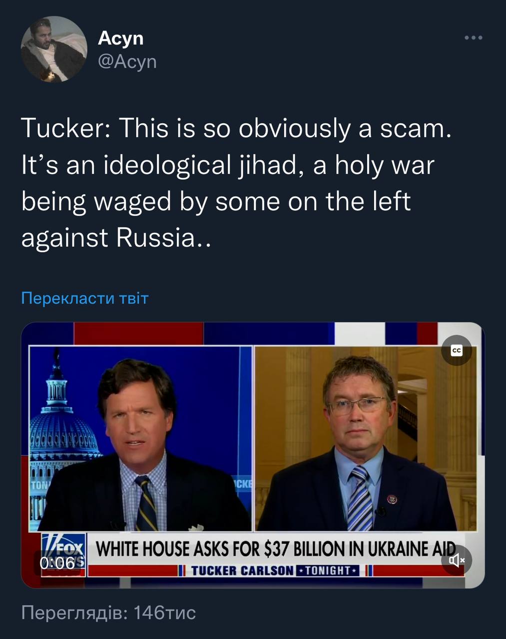 Такер назвав протидію Росії «лівим джихадом».