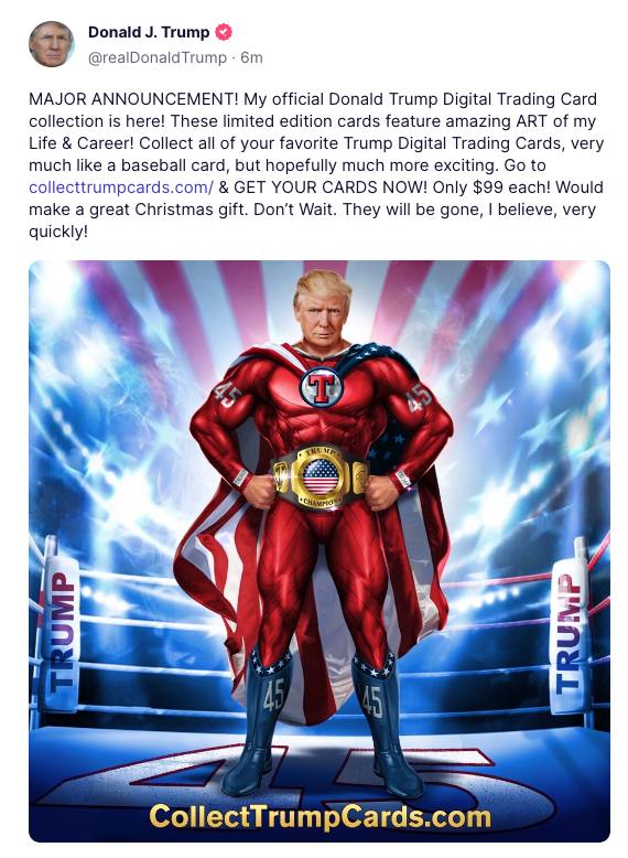 І що серйозно дід, який каже, що він кращий за Джорджа Вашингтона, Батька-засновника США, та Лінкольна, засновника партії, щоб продати картинку за 99 баксів, буде кандидатом від Республіканської партії?