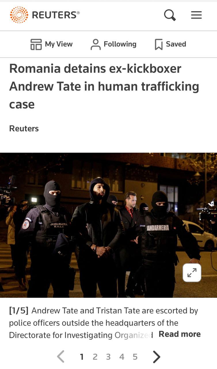 Відомий у вузьких колах (серед онлайн-інцелів та альт-райтів) Ендрю Тейт затриманий в Румунії за торгівлю людьми (для порно).