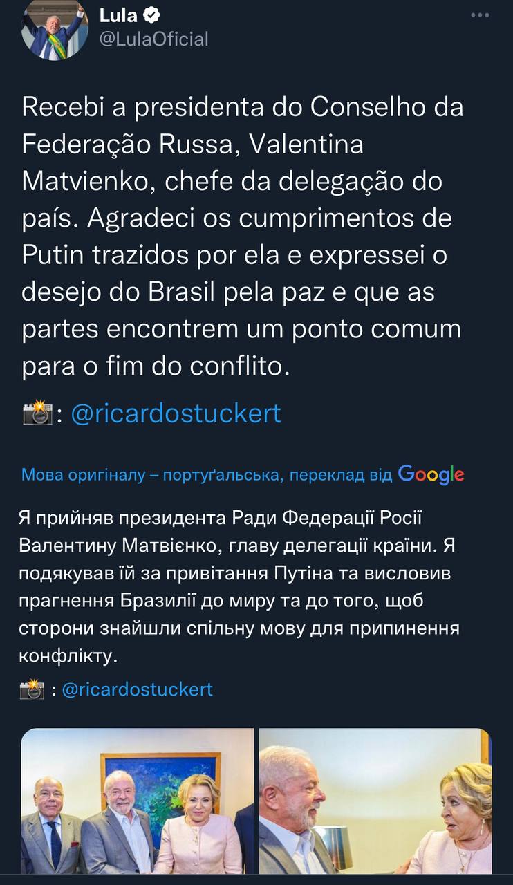 Комуняка і злодій Лула вже цілує дупу русні. Макрон телефонуй своєму другу і вилови відосик