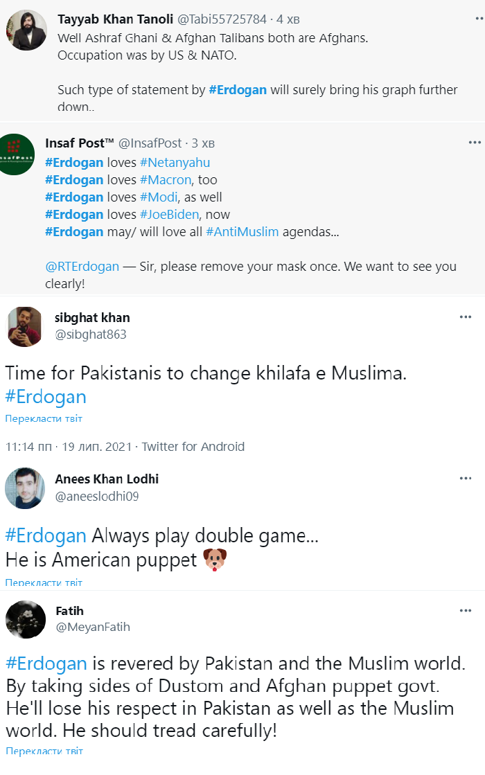 Сьогодні там траур. Можете вбити #Erdogan в Твітеррі і ви побачите одних паків, які "виколупують Ердогана зі своїх сердець" за слова про талібів.