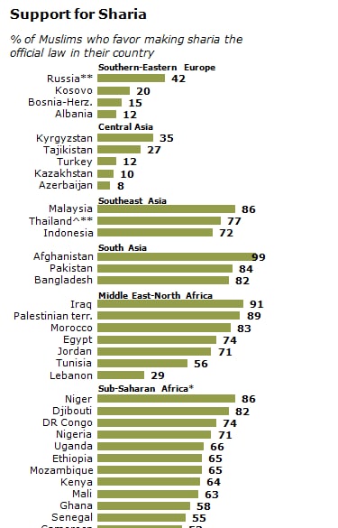 Зверніть увагу на Киргизстан, в якому "шаріатців" більше за Ліван, Туреччину чи Албанію.