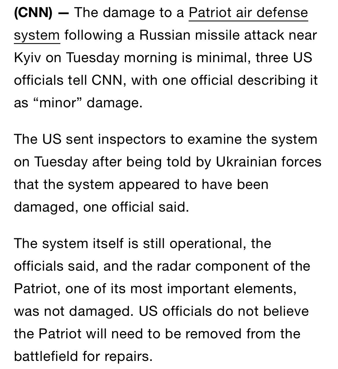 Зраду відмінили. Патріот мінімально пошкоджений і знімати його з чергування немає потреби, кажуть американці після інспекції.