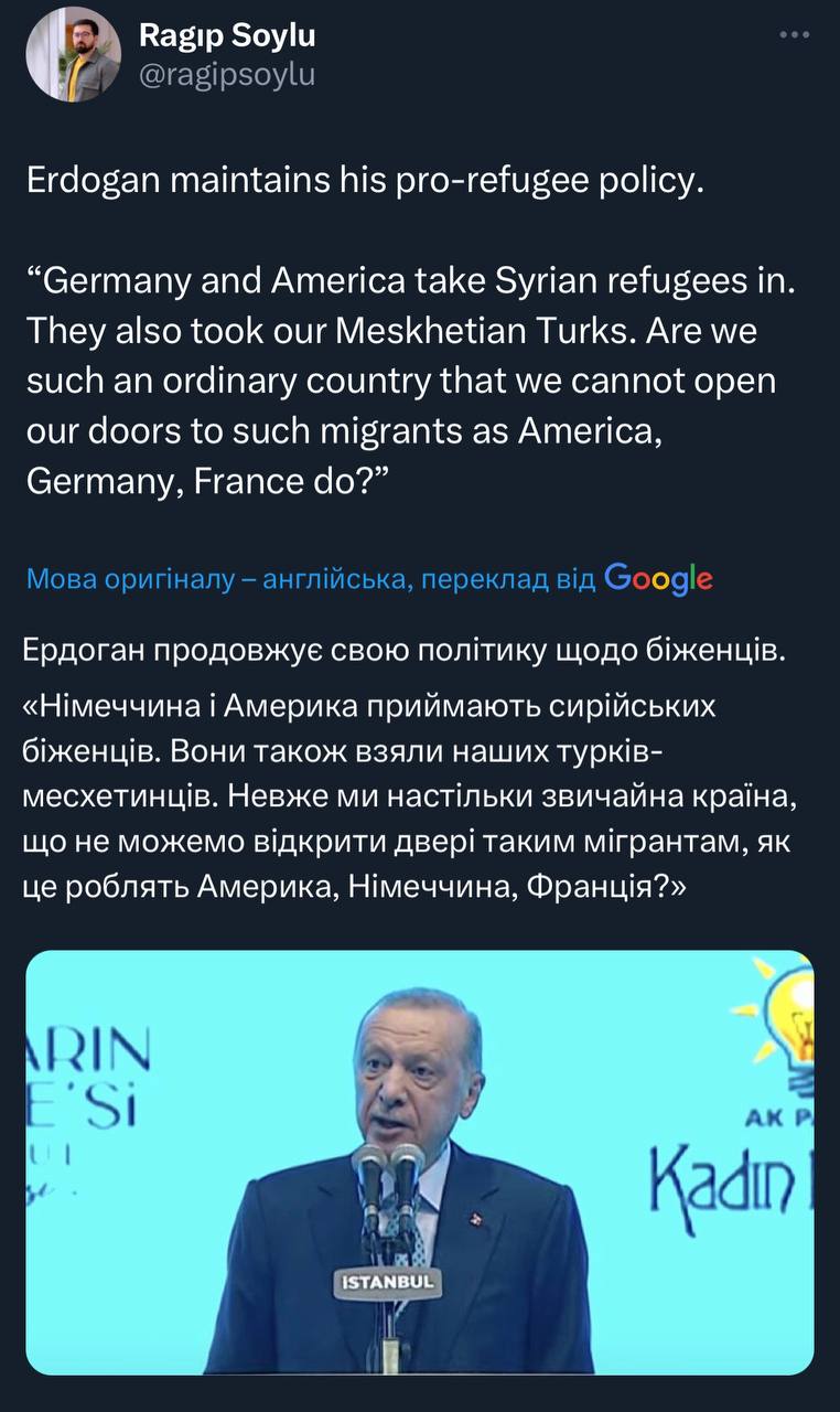 Цікаво, що не дивлячись на те, що націоналісти володіють «золотою картою» і не зважаючи на його обіцянки Огану, Ердоган продовжує свою про-мігрантську риторику.