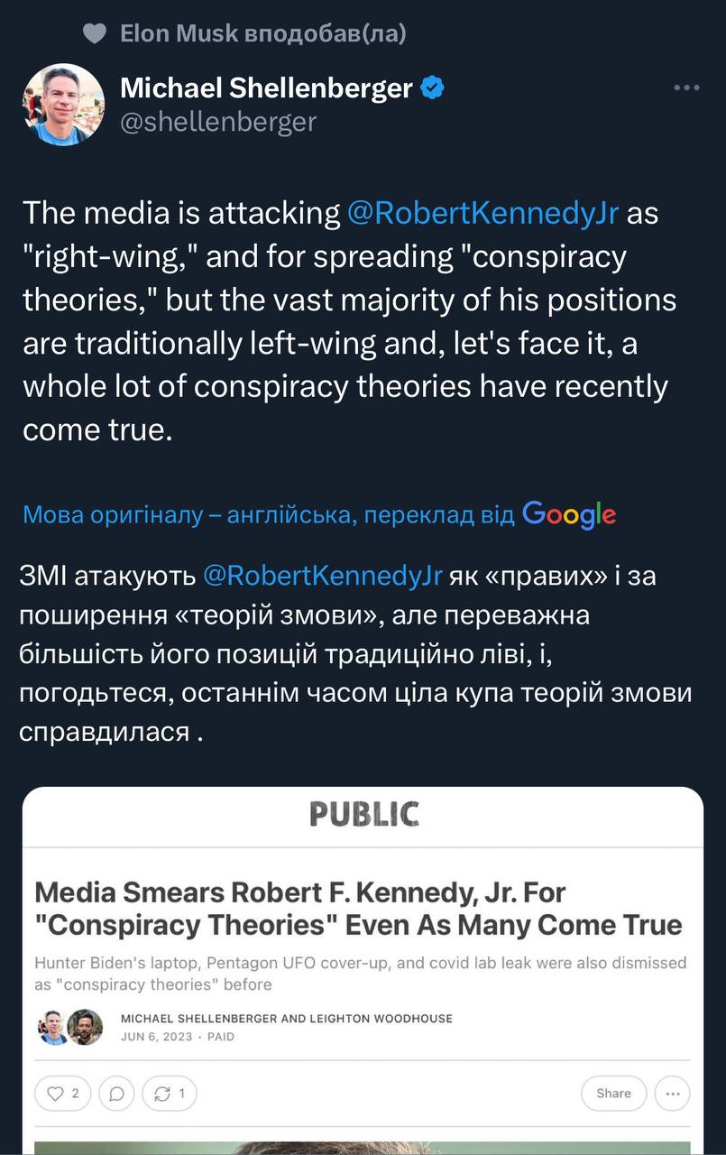 Та смішно, як ви там один одного цілуєте в дупи усі: демократ Шелленберг, ідеологічний хуй зрозумій хто Маск, лівий шизоїд Кеннеді, правий шизоїд Флінн.