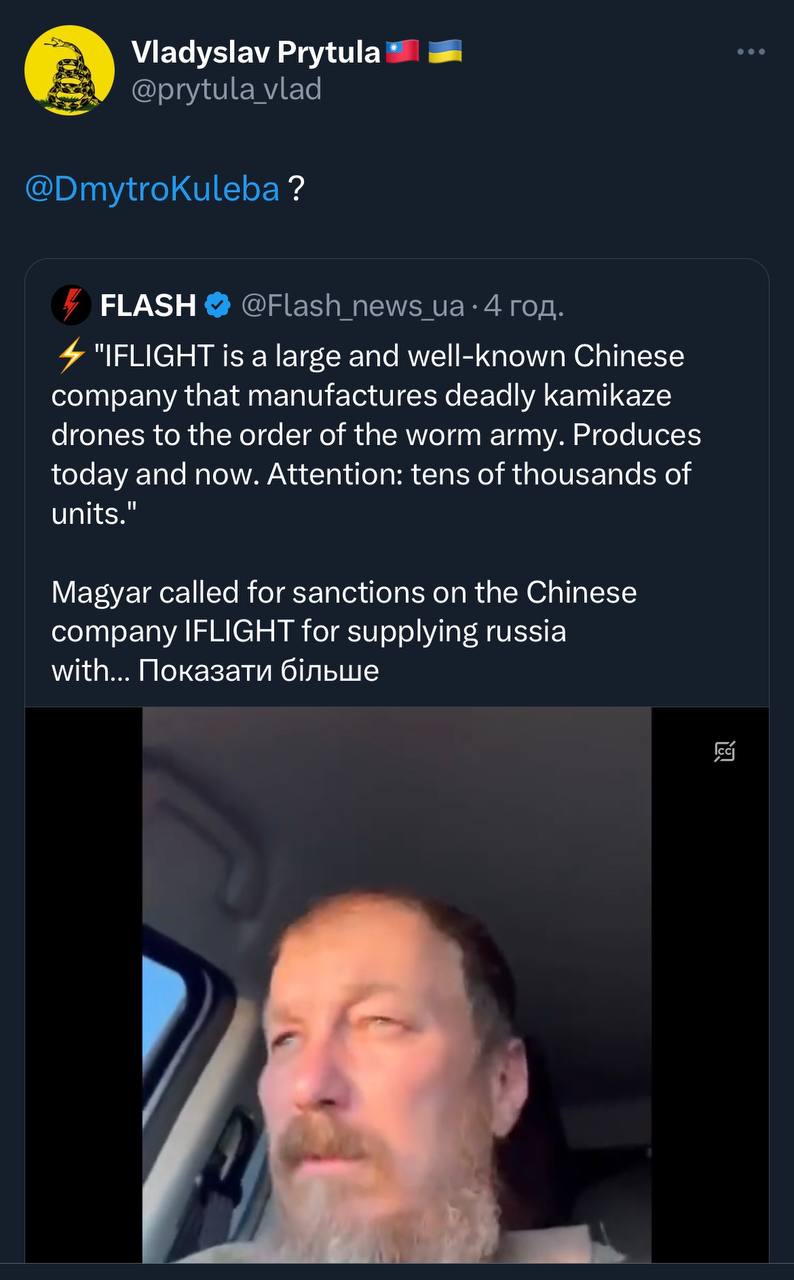 IFLIGHT- велика та відома китайська компанія, що виробляє смертоносні дрони-камікадзе на замовлення хробачоі армії. Виробляє сьогодні і зараз. Уважно: десятками тисяч одиниць. Потрібно негайно ініціювати діалог зі Сполученими Штатами та країнами ЄС про запровадження широких санкцій по даній компанії, як раніше вже було зроблено з пʼятьма китайськими компаніями, що постачали запчастини до шахідів.