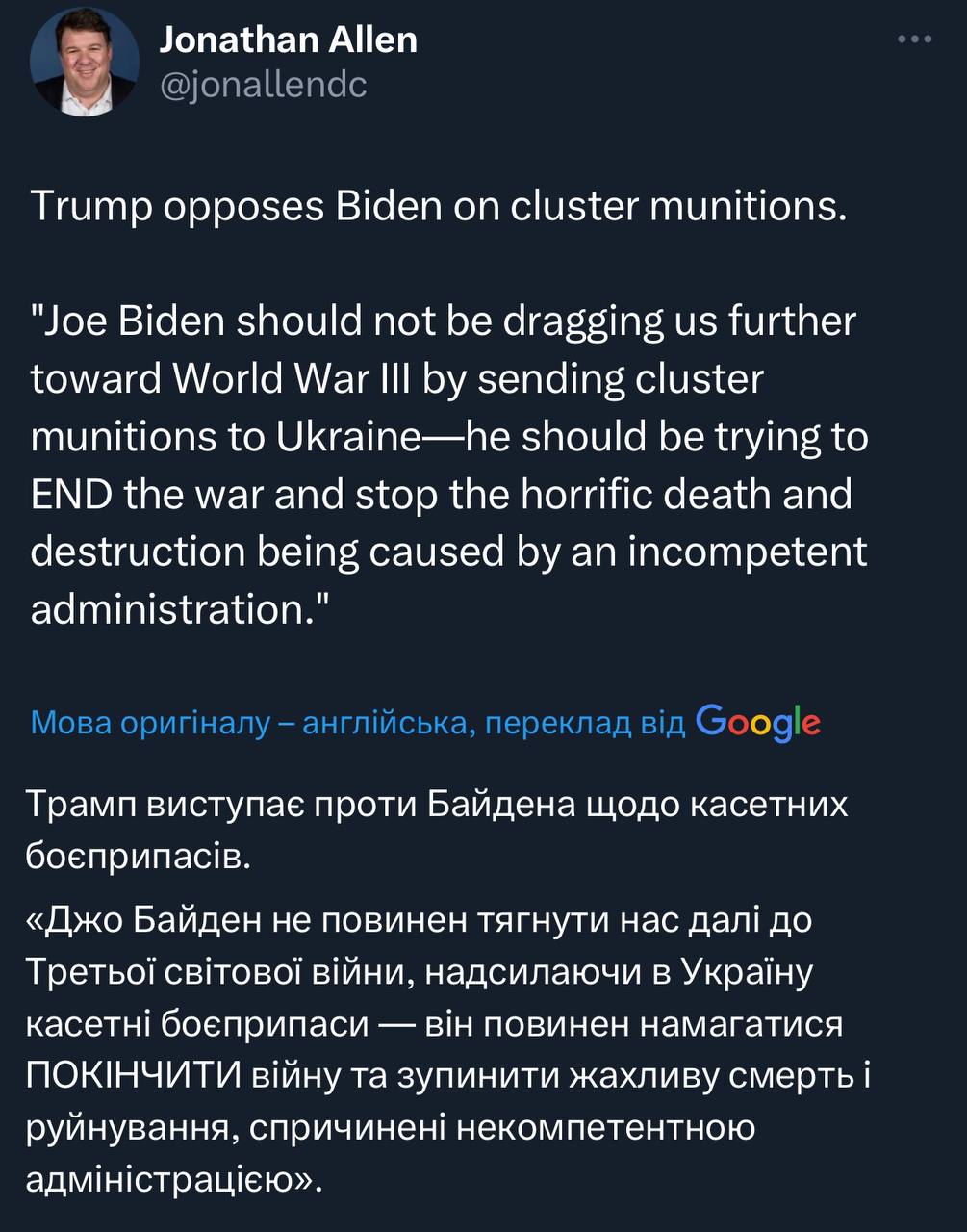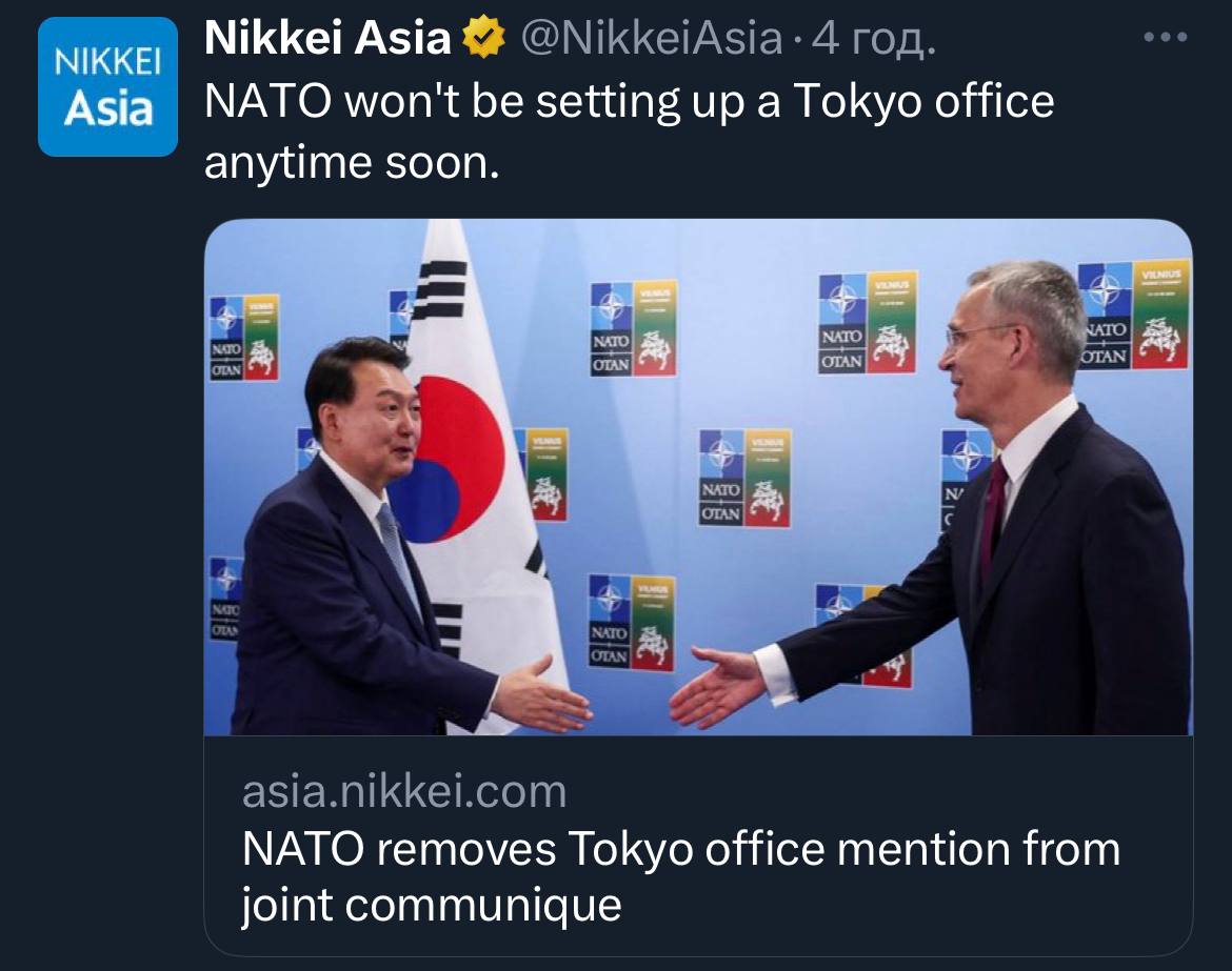 Який месседж НАТО надіслало Путіну? Україна не буде в НАТО поки триває війна. Логічний висновок з цього: Поки триває війна Україна точно не буде в НАТО. Тактичний висновок: кривава війна це засіб недопущення України в НАТО . Стратегічний висновок: брутальна сила проти слабшого ефективний метод досягнення своїх цілей. Записано в тижневик в Москві, Пекіні, Тегерані, Пхеньяні.