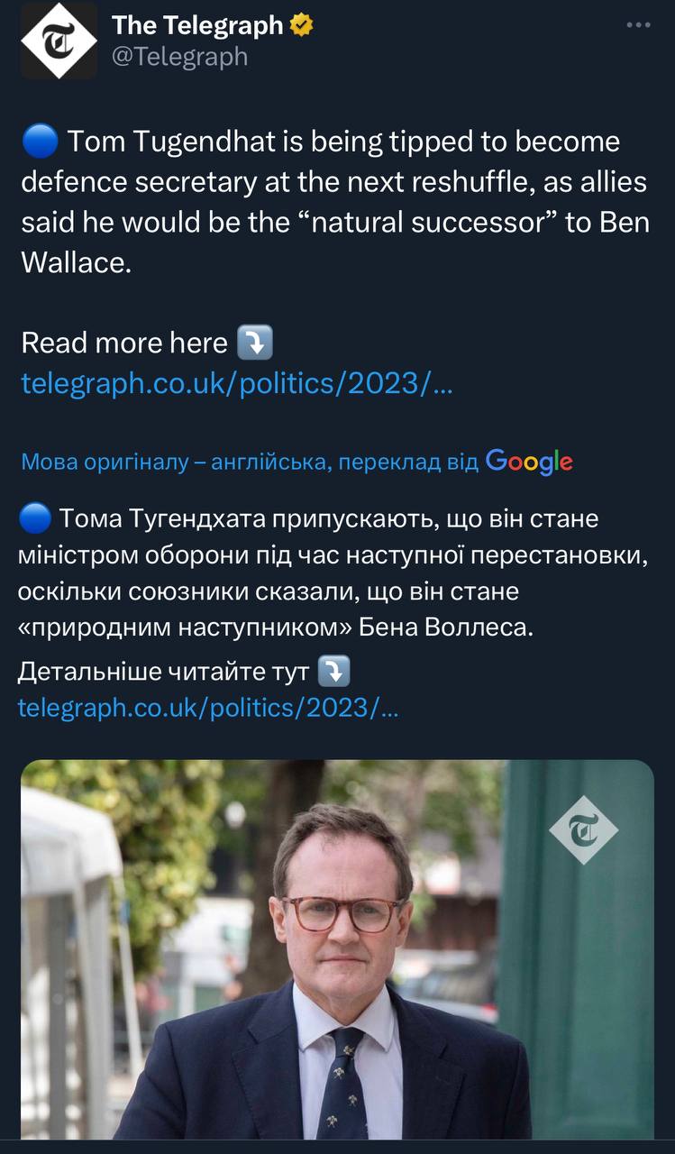 Щодо його наступника, то кажуть ним буде Том Тугендхат. Хороший вибір, добротний неокон. Щоправда більш "політичний", тому не буде настільки незалежним як Воллес і буде звіряти годинника з урядом в цілому.