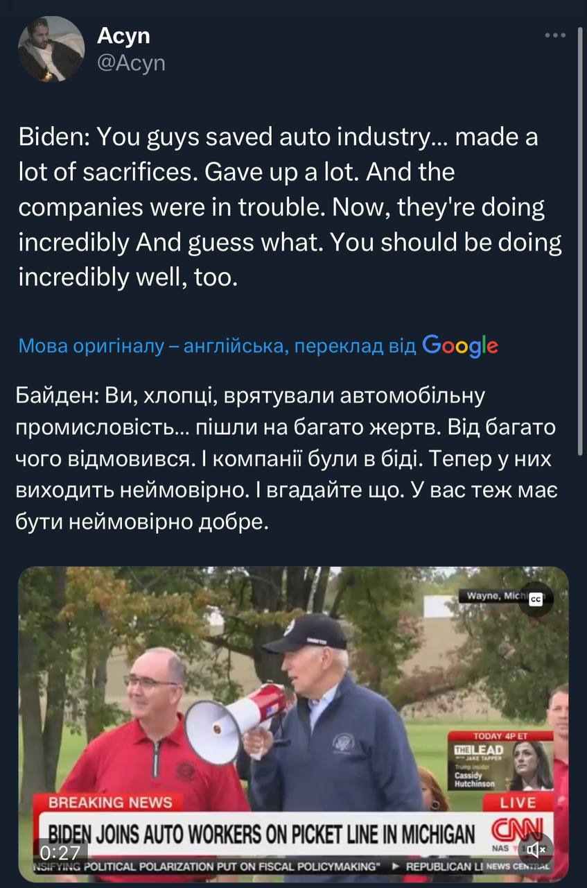 Докотились, що обидва і Байден, і Трамп підтримують бандитів з профспілок. Мафія, членами якої є лише 10% робітників, але яка чкогось хера говорить від імені усіх робітників.