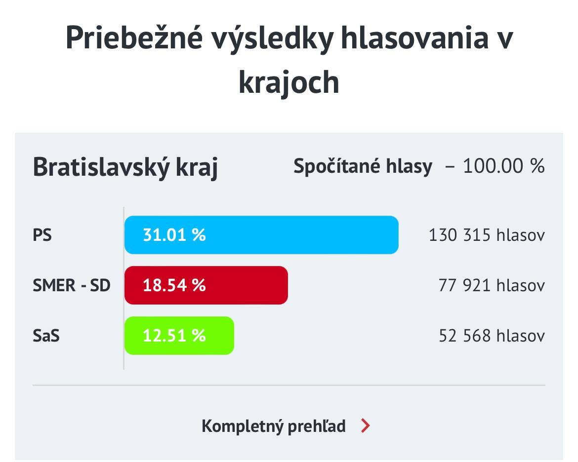 Проєвропейська партія Progresívne Slovensko посіла друге місце, набравши майже 18%.
