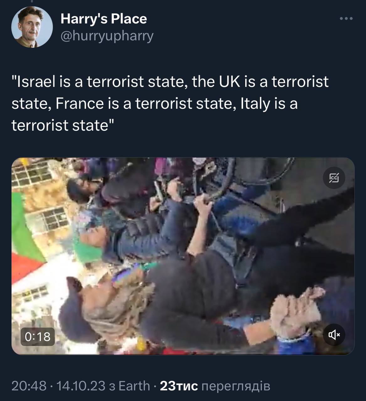 Потасовка в Лондоні. Одному про-хамасівцю в кінці відключили світло 😂