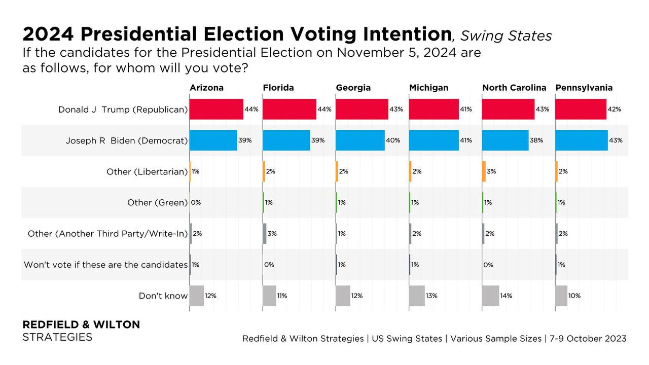 Трамп випереджає Байдена в 4 з 6 swing states.