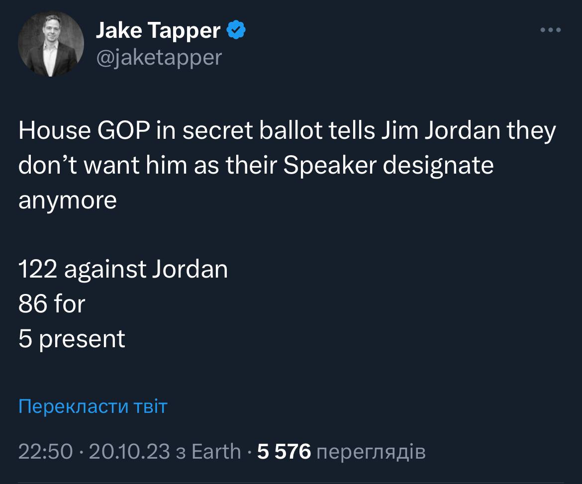 Чи вирішить керівництво партії нарешті боротись з Трампом? Навряд, скоріше знову прогнуться. Як ми побачили раніше хребет є тільки в 20 республіканців. Звісно може перемога над Джорданом додасть їм сміливості, але поки я скептичний.