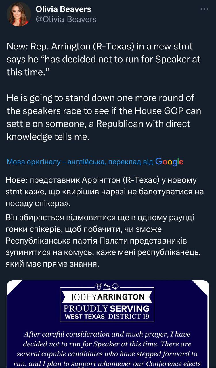 ​​Цікаво. Я розглядав як Джоді Аррінгтона як одного з небагатьох, хто міг би стати компромісною фігурою і зміг би набрати голоси. Тепер навіть не знаю, що вони збираються робити 🤷‍♂️