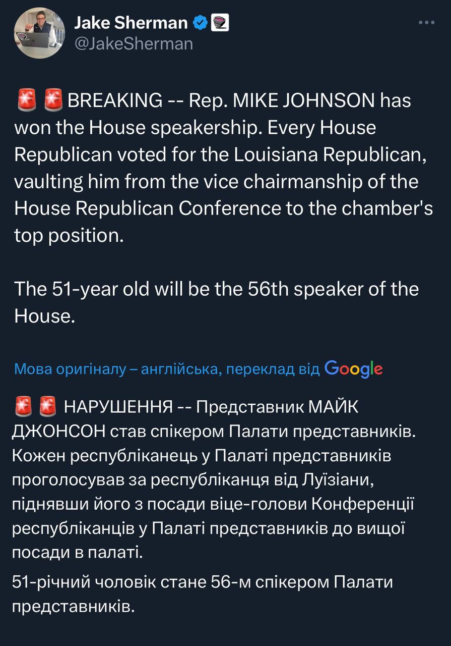 Думаю зараз оберуть Майка Джонсона, але чи будуть в нього голоси в залі? Залежить від готовності поміркованих до боротьби.