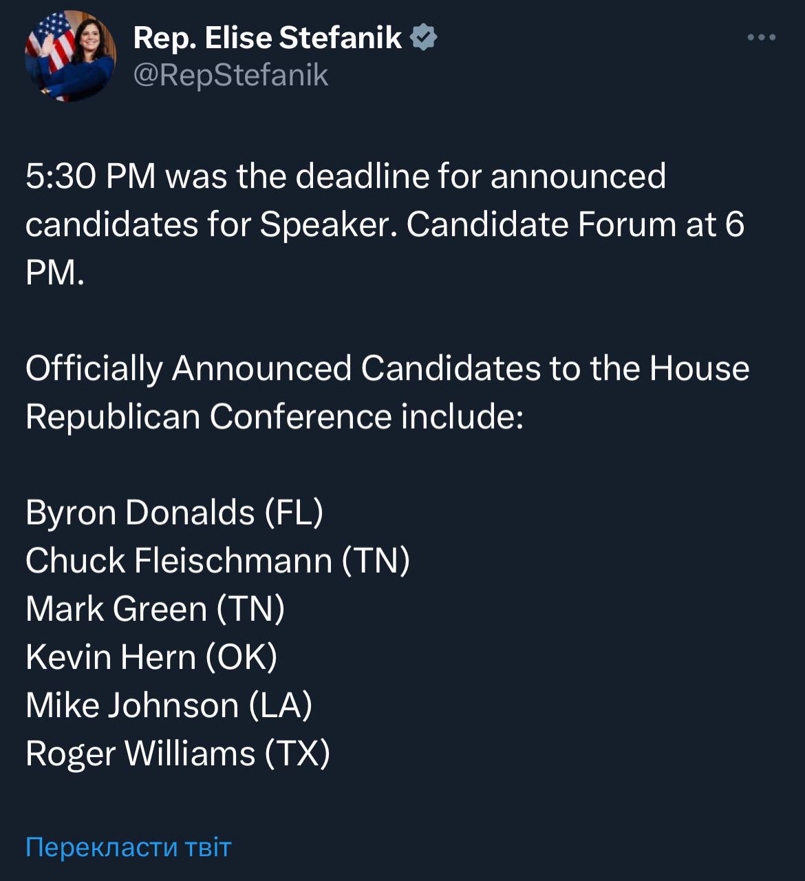 Залишилось двоє Еммер та Джонсон. Дональдс сам вийшов, схоже трампісти хочуть обʼєднати голоси навколо Джонсона 🤔