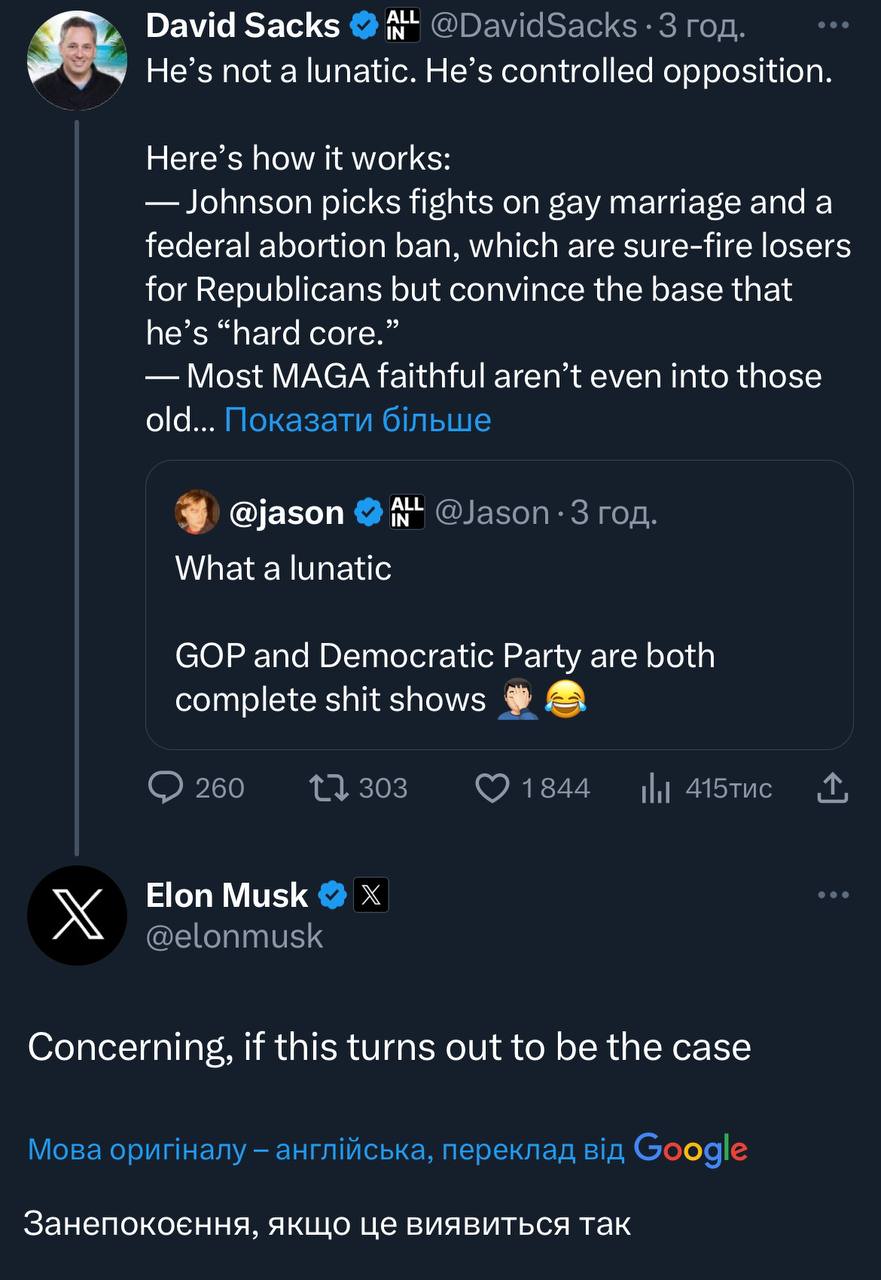Майк Джонсон: має iq вищий за середньостатистичного «експерта Ілона Маска».