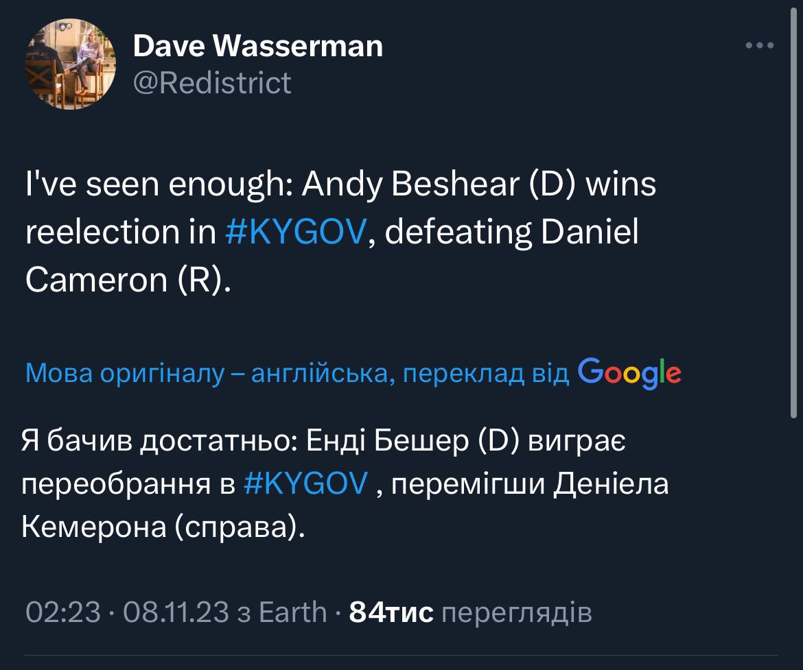 Кемерон мав endorsement Трампа і балотувався в глибоко червоному штаті. І програв демократу. Так це не не типовий демократ, це «Бурбоновий демократ», який усіма силами дистанціювався від Байдена, але всеодно показово.