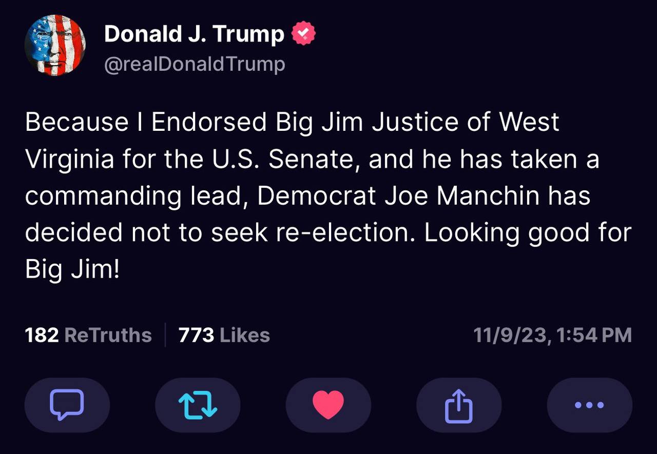 Але Трамп підтримав Джастіса разом з Макконелом, якого кляне в кожному пості. А чому? Бо Джастіс популярний і виграє праймеріз, а Трамп не хоче бути лузером, тому не буде підтримувати якогось невдаху тільки тому, що у нього ідеологічні погляди, які люблять його фанати 🤷♂️