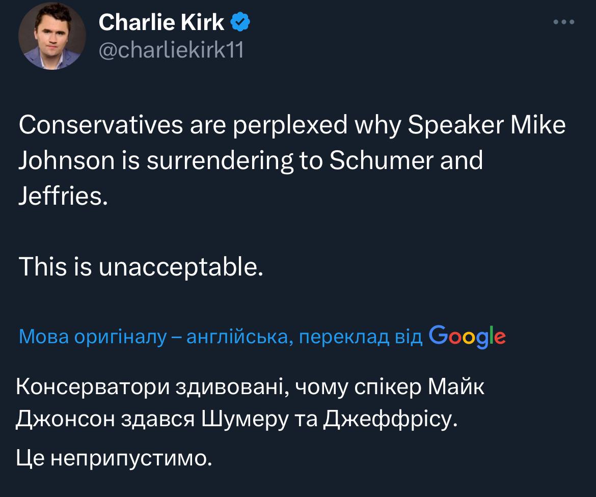 Схоже усі дійшли згоди в Конгресі продовжити роботу уряду до 2 лютого 2024 року, але гроші для Україні та Ізраїлю не будуть включені. Тобто ще мінімум три місяці грошей не буде 🤷♂️