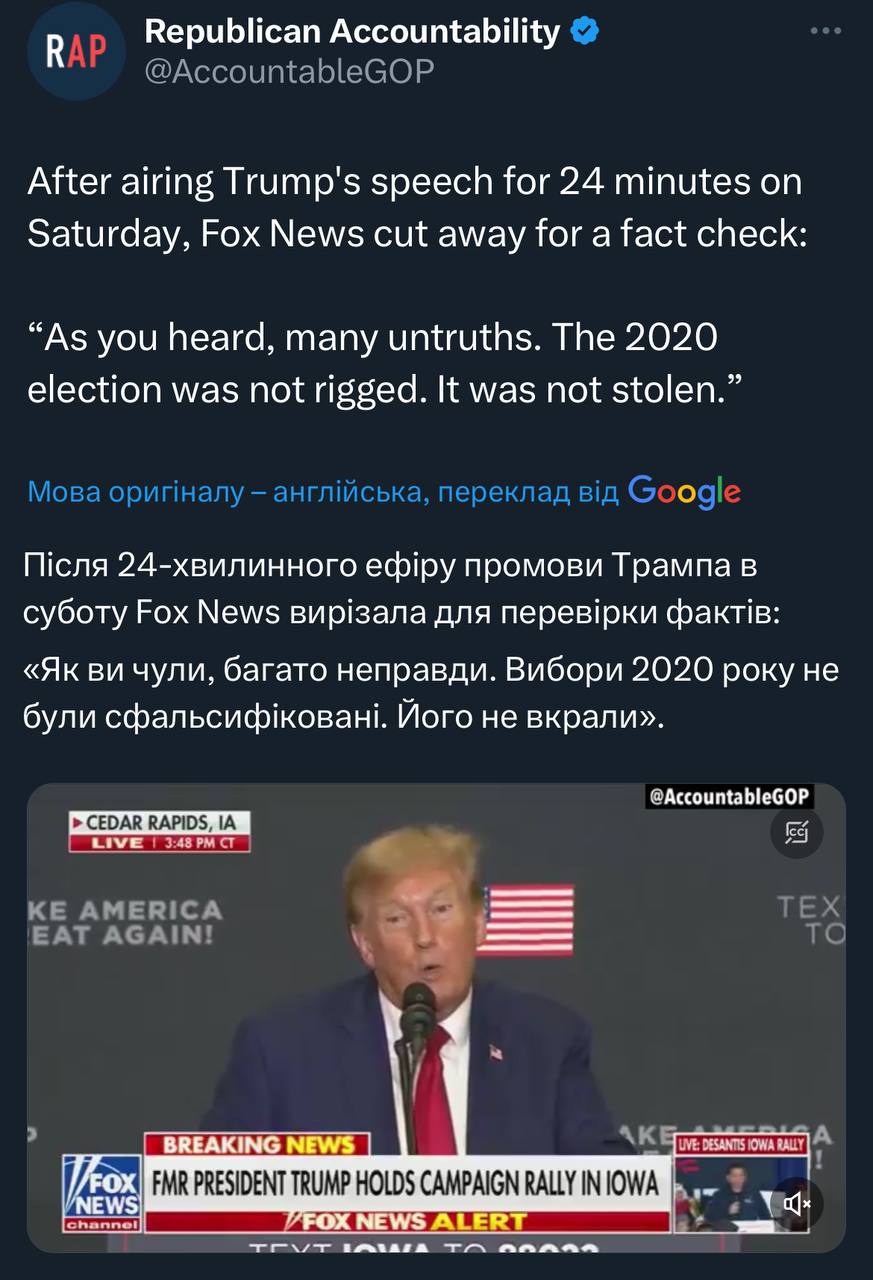 "Під час телефонної розмови через тиждень після історичного усунення Маккарті з поста спікера, Трамп пояснив, чому він відмовився вмовити представника Палати Метта Гетца (Флорида) та інших крайньо-правих законодавців припинити кампанію за зняття Маккарті з посади, згідно повідомлень людей, знайомих з розмовою.