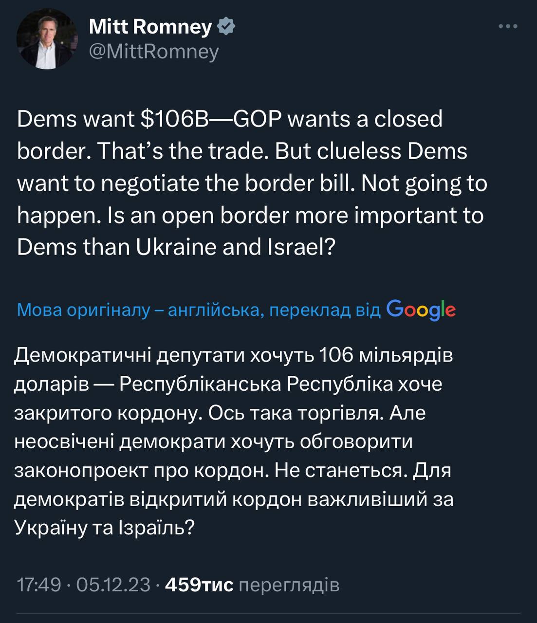 Ромні входить в групу сенаторів, що шукають компроміс. Судячи з усього - поки не близько 🤷♂️