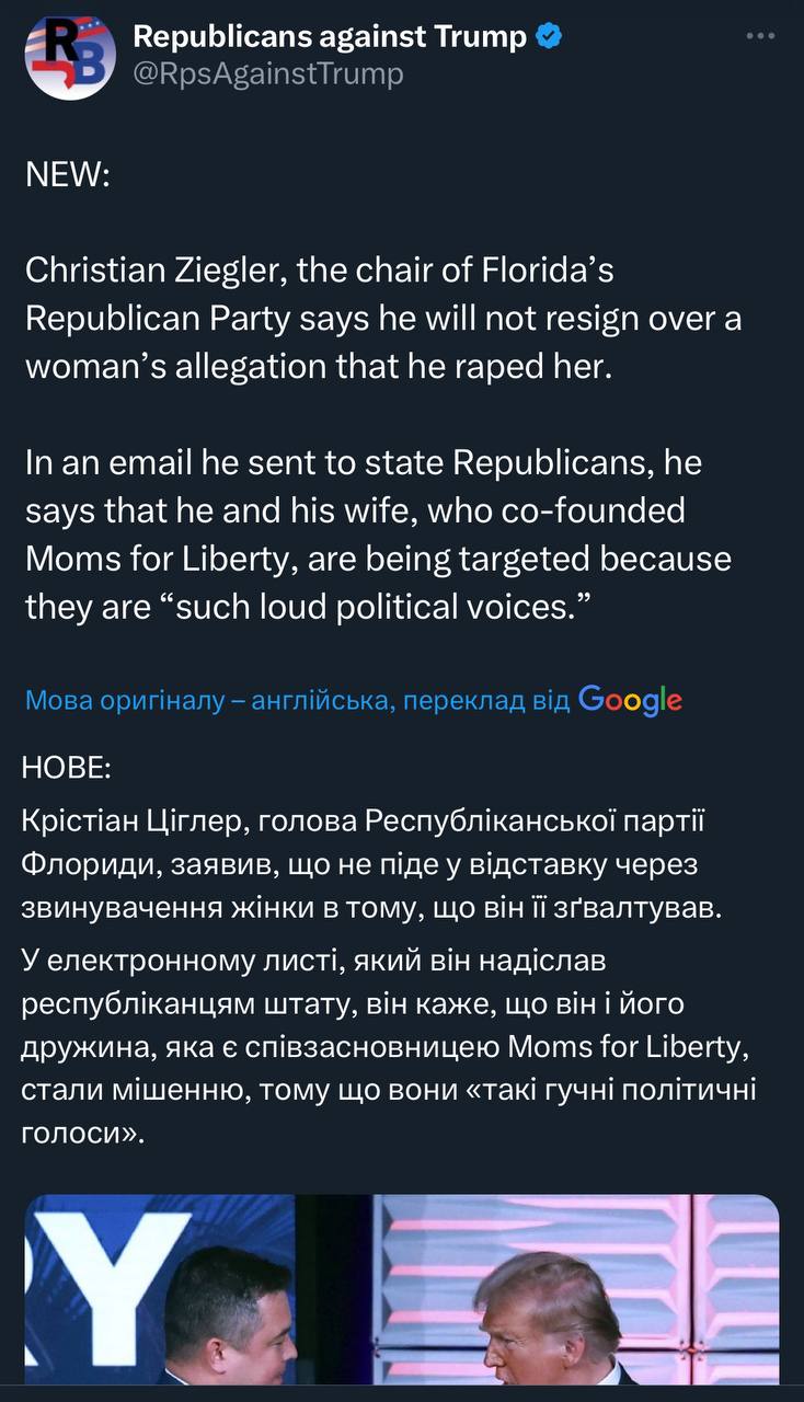 До честі Де Сантіса, він не став молоти маячню про "діп стейт" і закликає Циглера піти у відставку з посади голови партії.