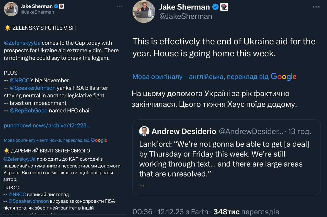 "Двупартійна група сенаторів відновила перемовини по кордону в четвер, даючи надію, що Конгрес зможе узгодити та прийняти широкий законодавчий пакет, що включатиме допомогу Україні та Ізраїлю, до кінця року.