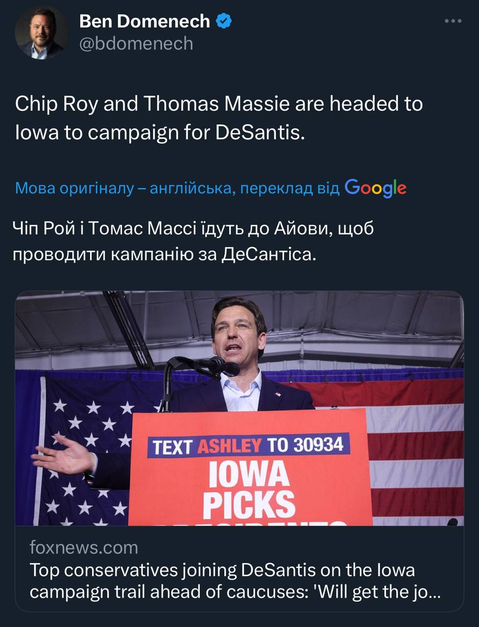 Щось Де Сантіс підбирає шо попало, ладно ще Полковник Сандерс (він ще не найгірший з Шизо Кокуса), але Массі? Що далі? Притягне Рона Пола з хоспіса? 😂