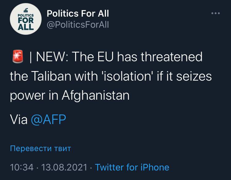 Євросовок погрожує талібану «ізоляцією» 😂